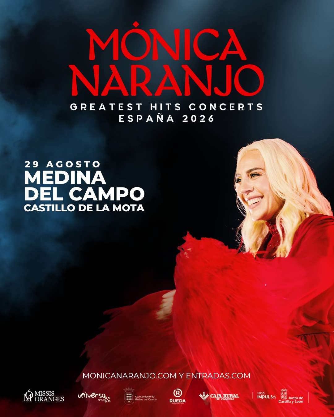 Mónica Naranjo llegará a Medina del Campo con su gira internacional Greatest Hits Concerts ‘26, un tour que repasa los momentos más destacados de su trayectoria artística, consolidada tras más de tres décadas de éxitos, innovación musical y una personalidad escénica inconfundible