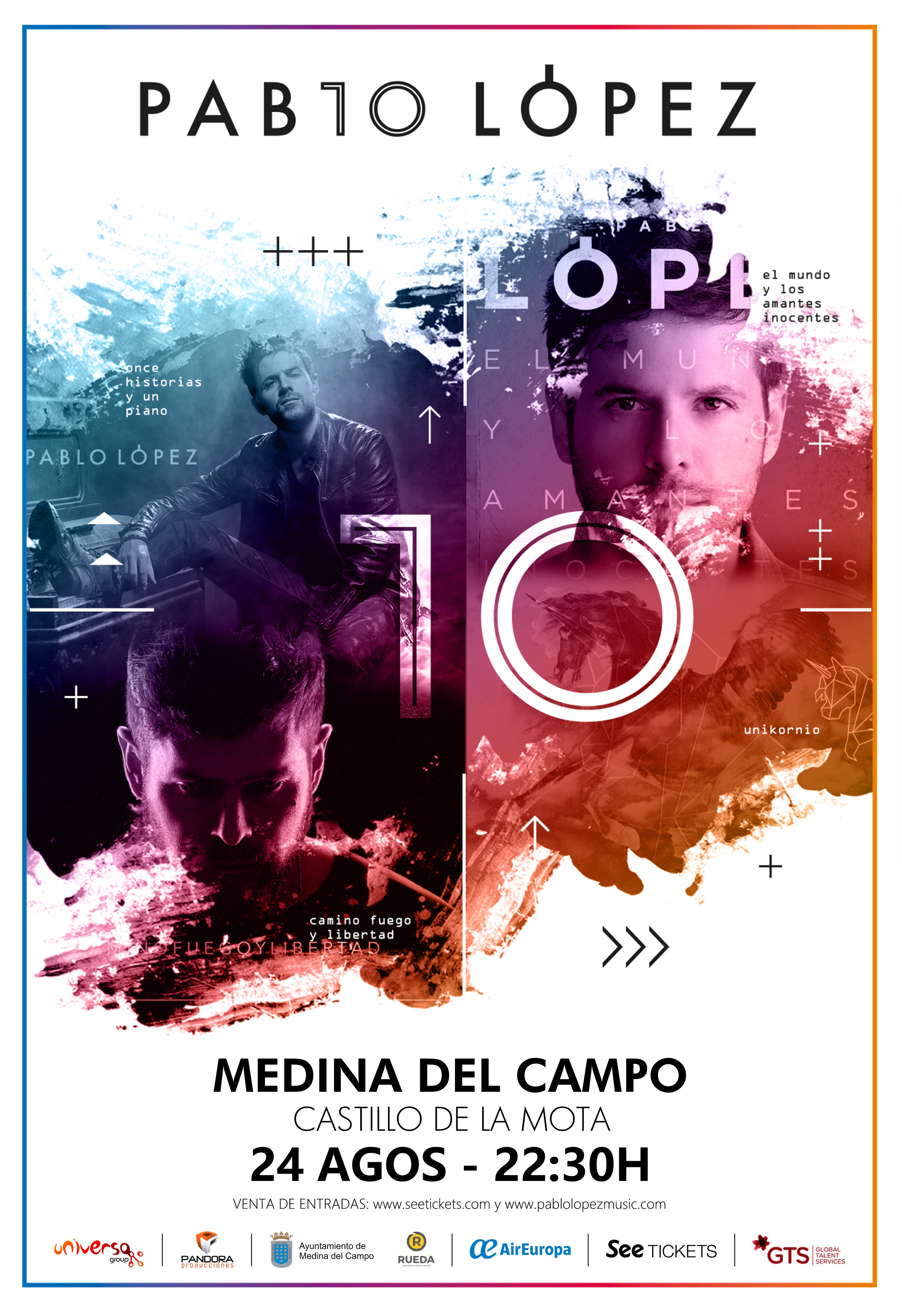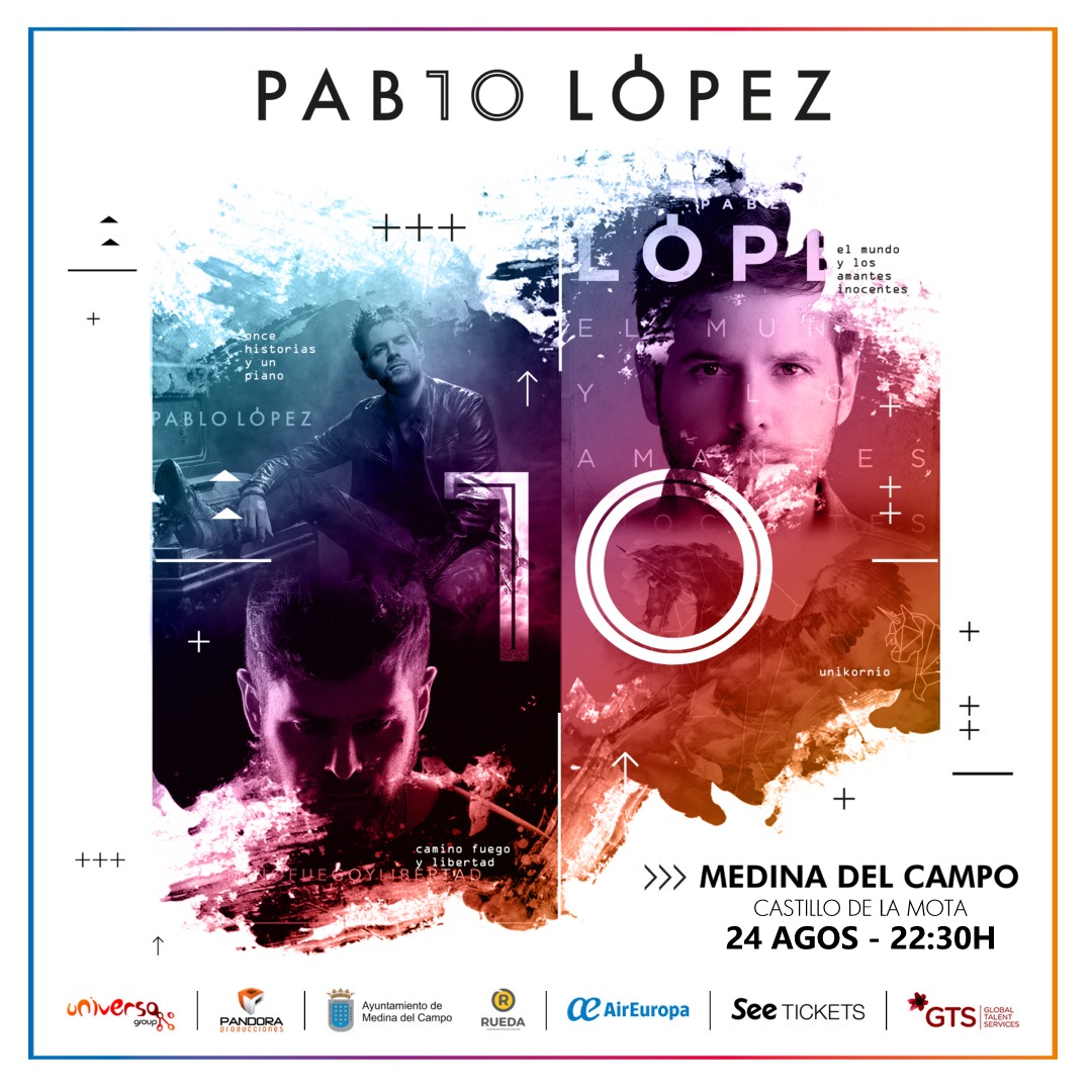 Pablo López actuará en el Castillo de Mota en Medina del Campo el 24 de agosto que junto a su banda celebrará con todo el público y sus fans el décimo aniversario de su carrera musical.